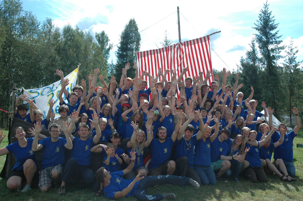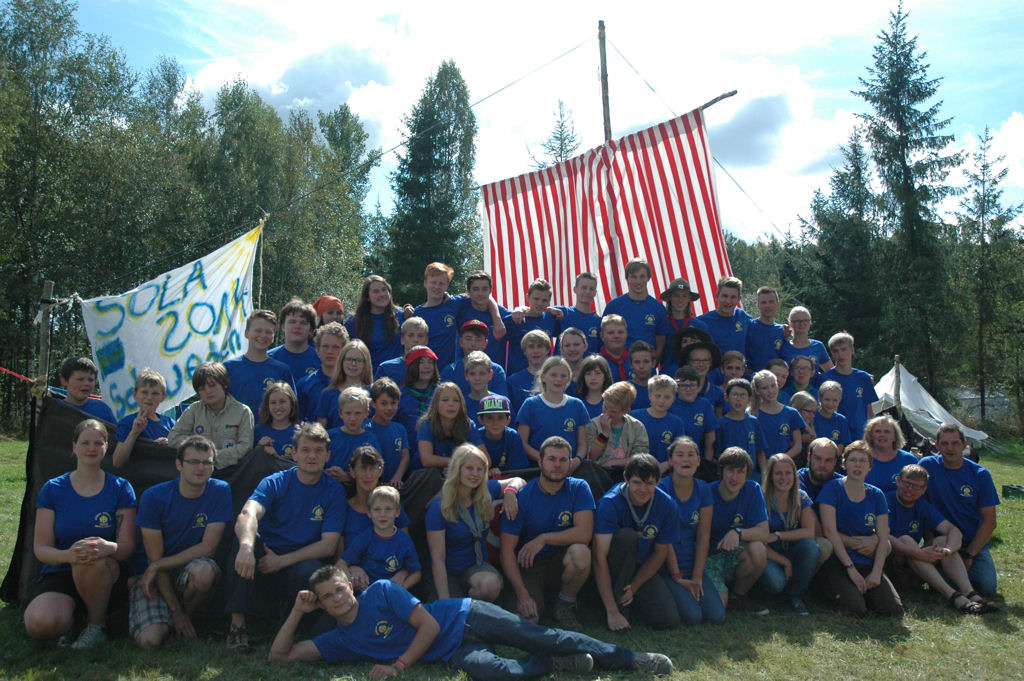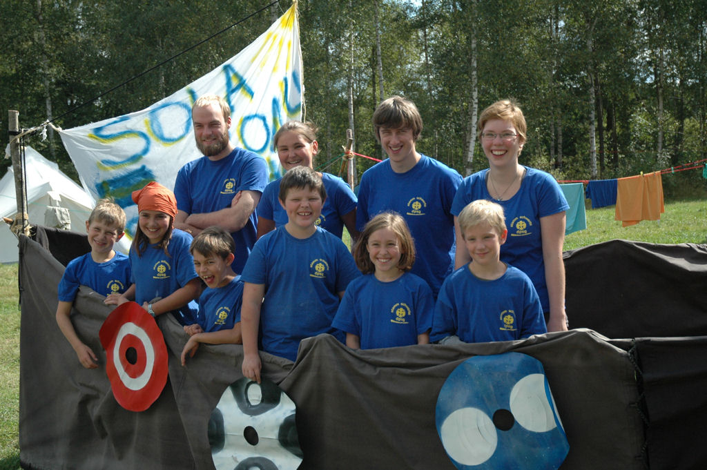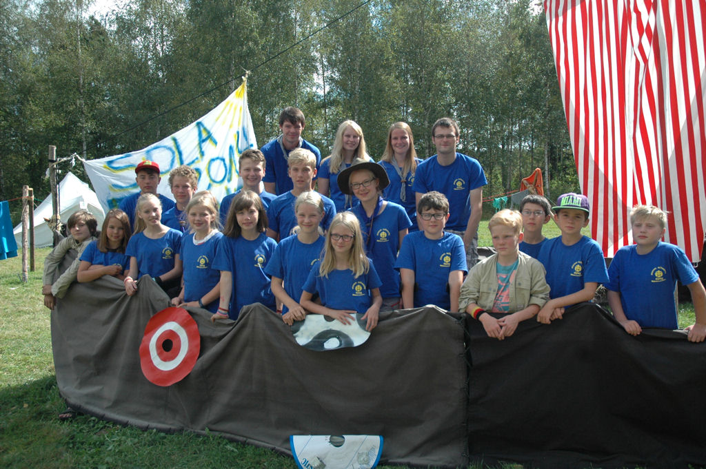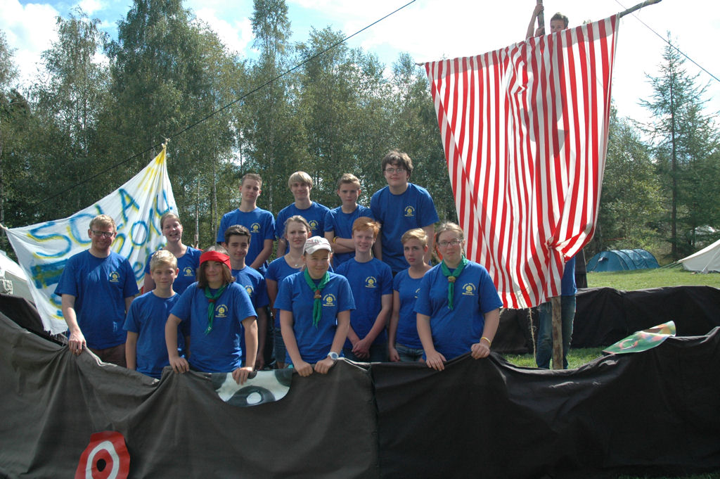 Nach Morgenrunde und Frühstück hieß es dann: Aufstellen zum Gruppenfoto vor dem „Wikingerschiff“ welches im ersten Teil des Stammesprogramms gebaut wurde.