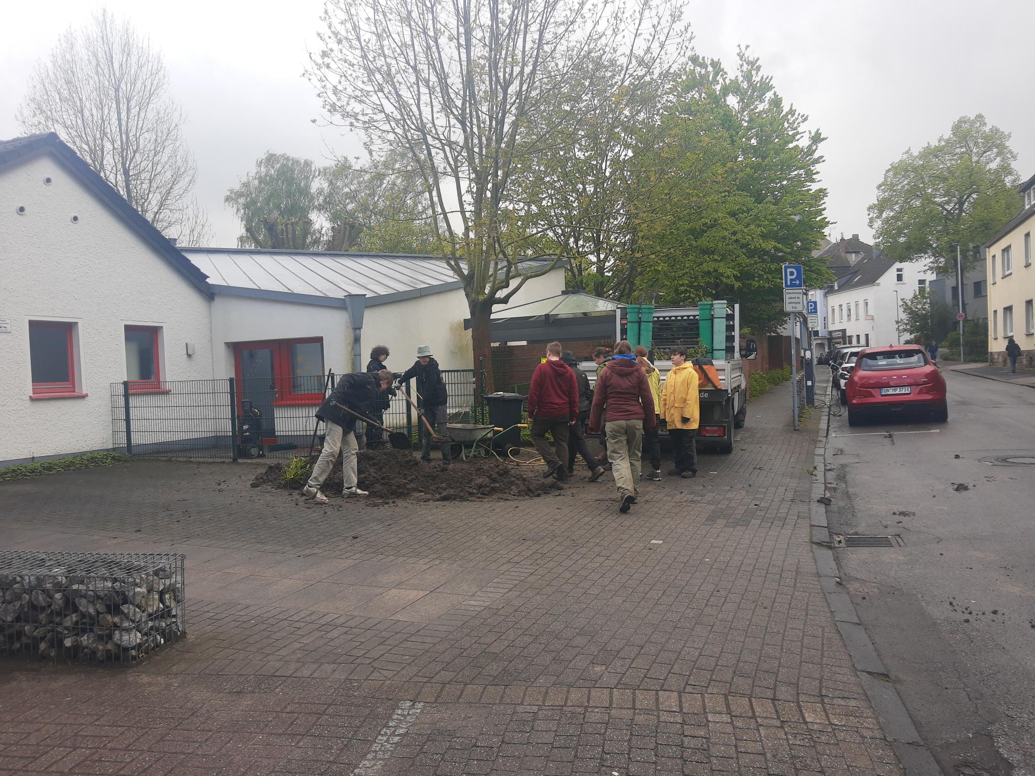 Wir werkeln an der katholischen Kindertagesstätte Arche Noah in der Haselackstraße und bauen dort ein Hochbeet, ein Gewächshaus und bemalen eine Außenwand. Außerdem werden wir das große Holzkreuz gegenüber der Marienkirche säubern.
